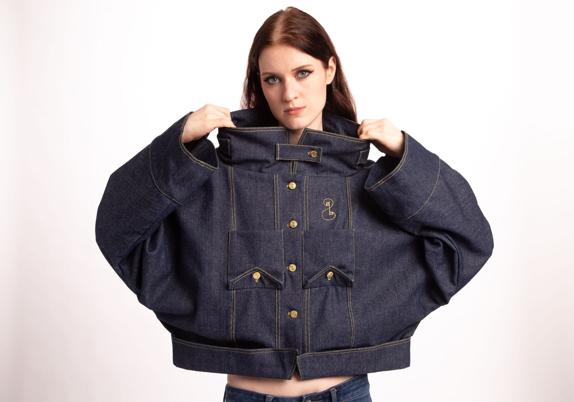 Maya's "bottom-up" denim collection, inspired by Rick Owens' 2015 show, features an avant-garde upside-down design with reversed pockets and collars, making a bold fashion statement. This daring approach pays homage to Owens' creativity and disrupts conventions in haute couture.